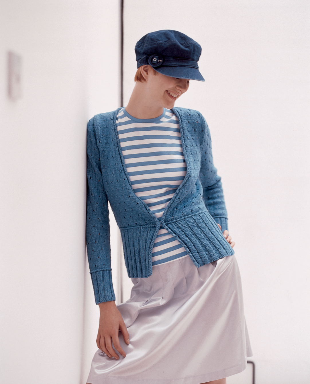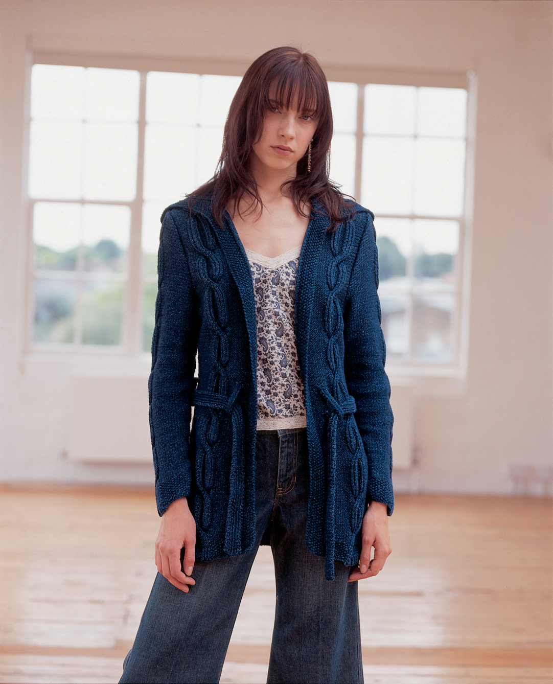 This cardigan with no closure is knitted in plan stockinette stitch.
