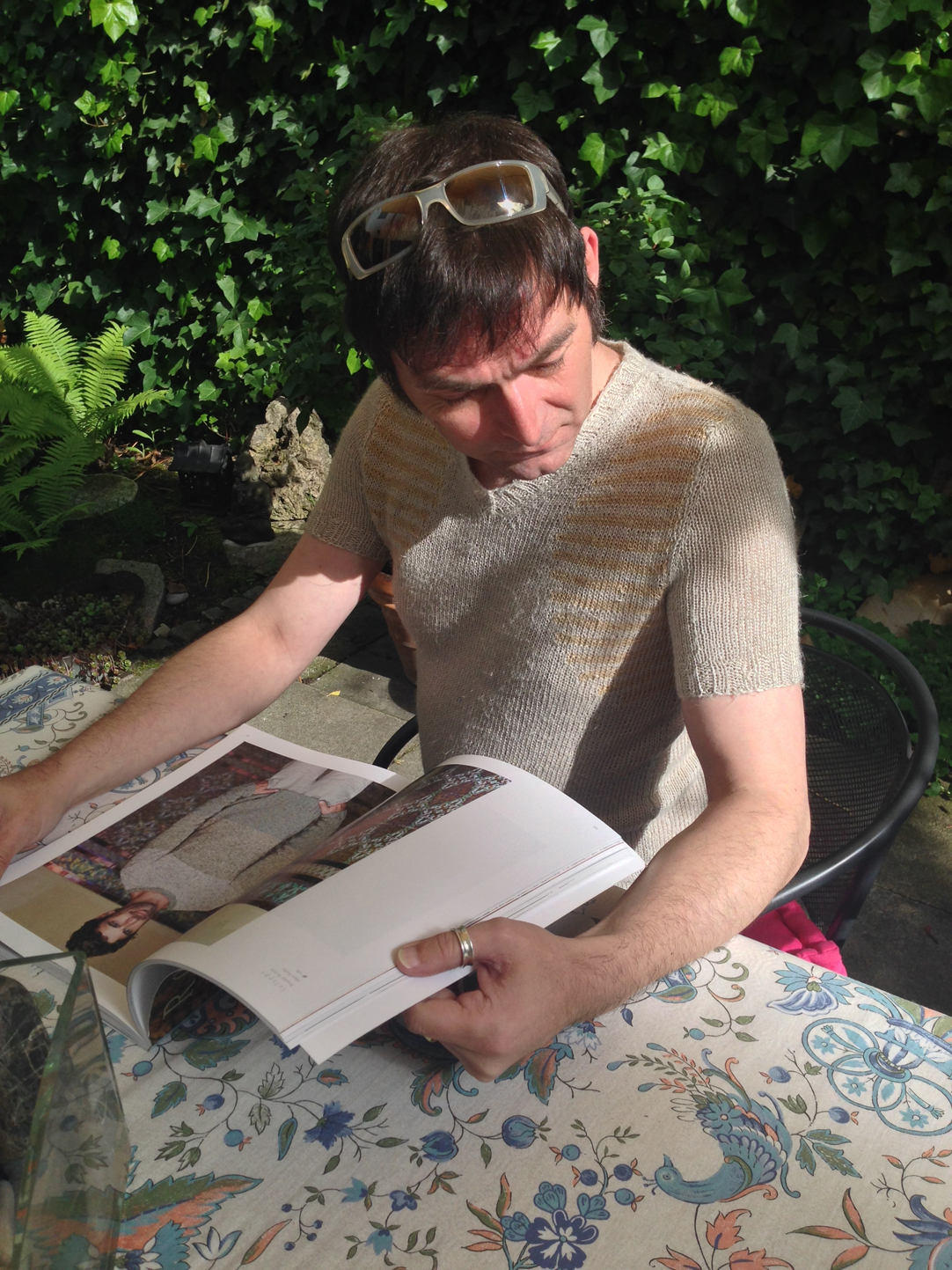 Konrad — this is THE coolest knitted men’s t-shirt I have ever seen. I am not exaggerating just because you are my friend — you are totally rocking this amazing design!! Bravo! And I’m really happy to see the Pure Linen knitted tight, it looks great. I have my *very* open lacework Palm Cove on right now and it’s a joy to wear. I love yarns that are this versatile, like Kid Classic, you can knit it at so many gauges!