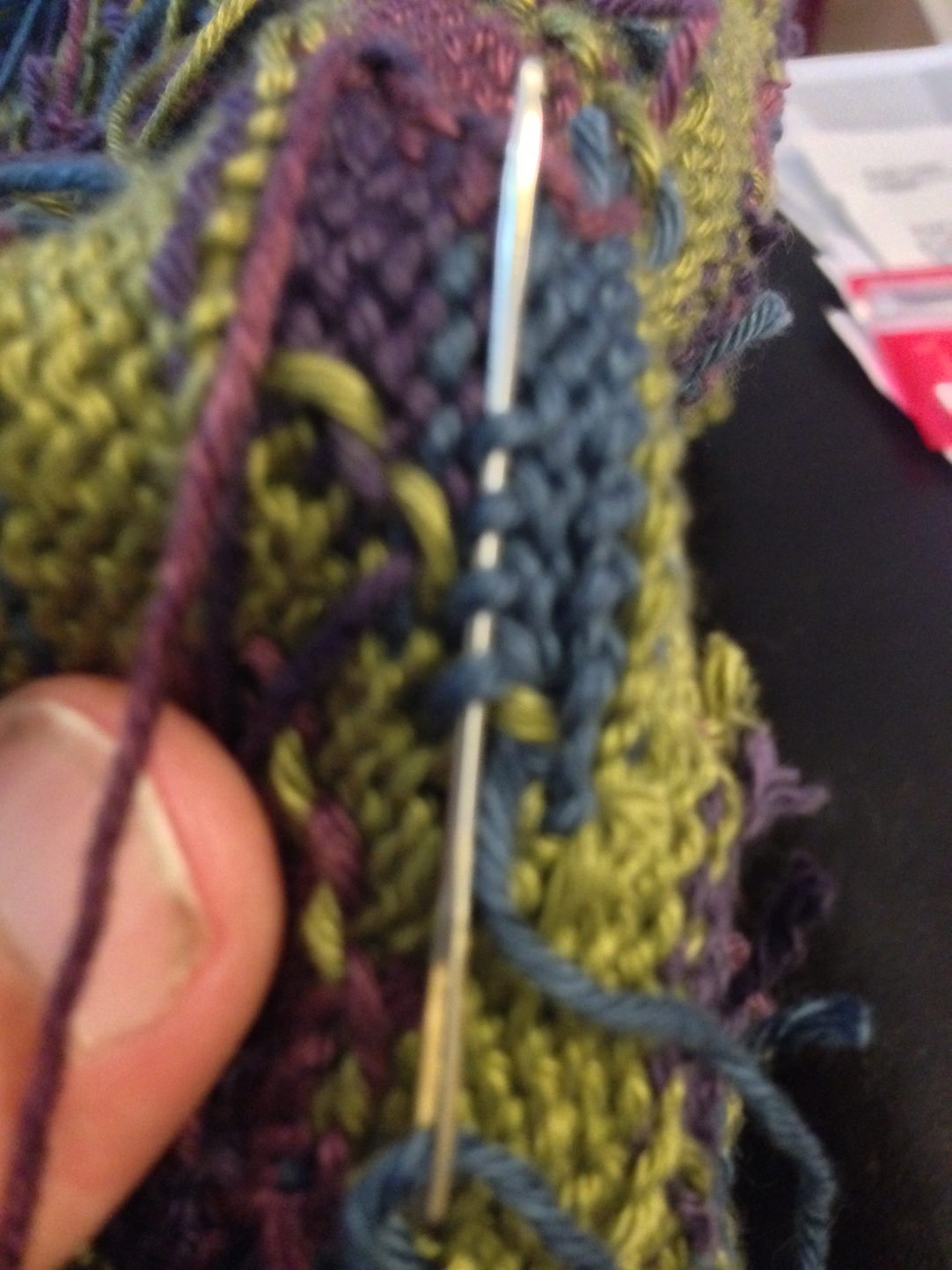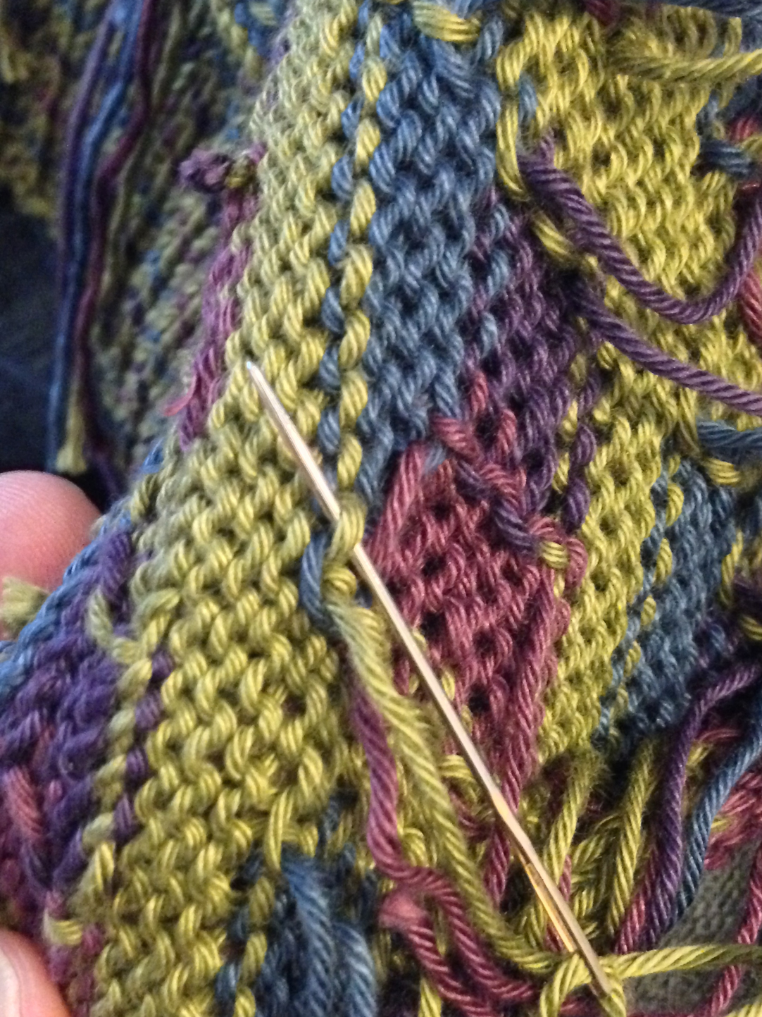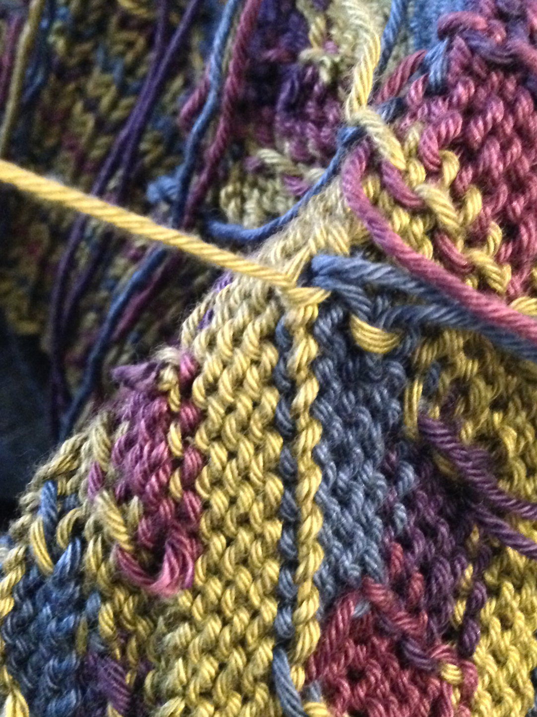 I completely agree with you. You CAN’T weave in all ends as you go when you have slippery yarns or too many quick color changes! I hate when everyone always suggests it for EVERY intarsia project I do — it’s not always the right approach. (Also, I find I get a tighter join between the colors when I weave afterwards than during)