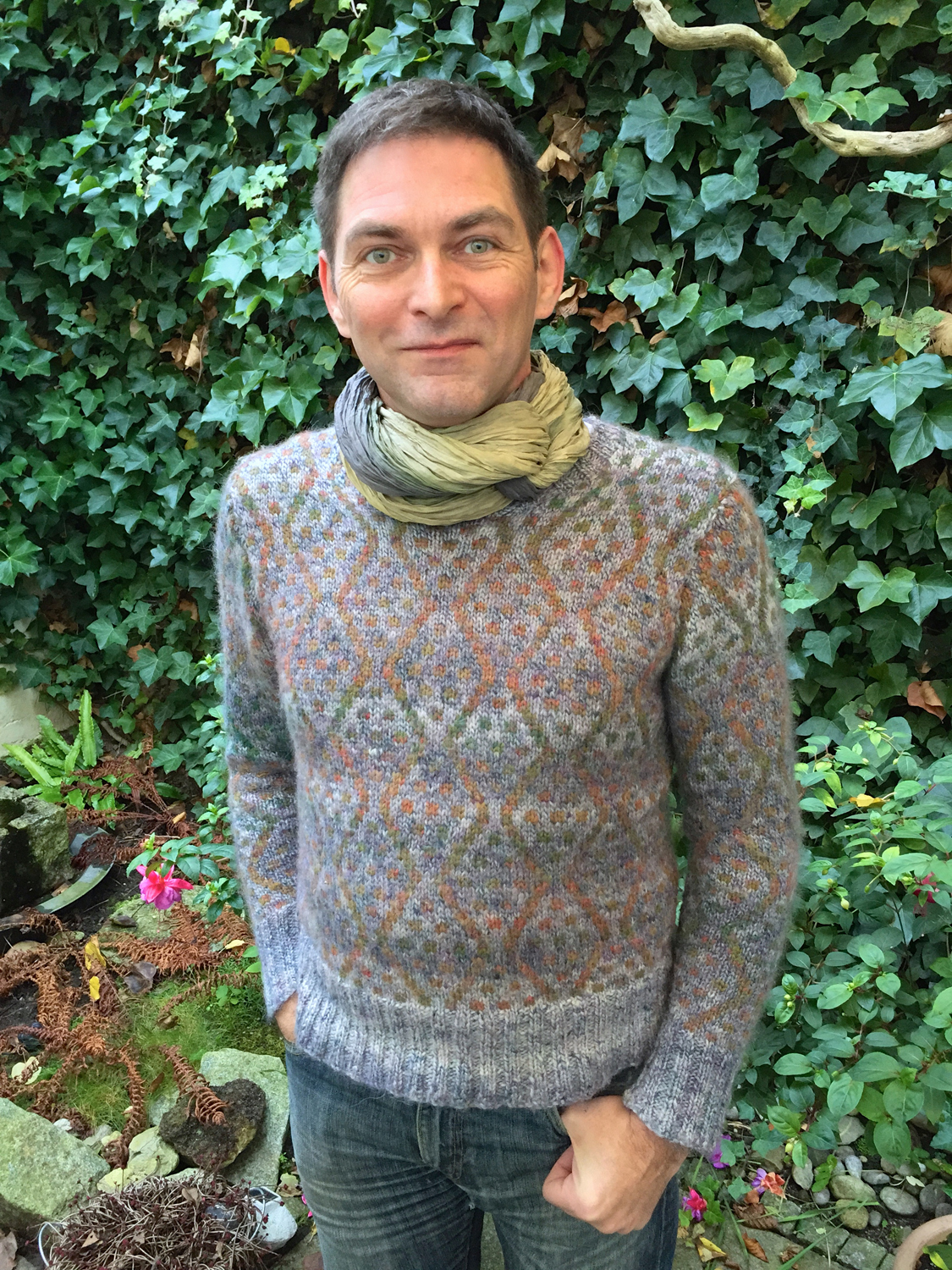 Brandon Mably used Rowan Colourspun in shade Winterburn 277 and Hubberholme 277 for his design.