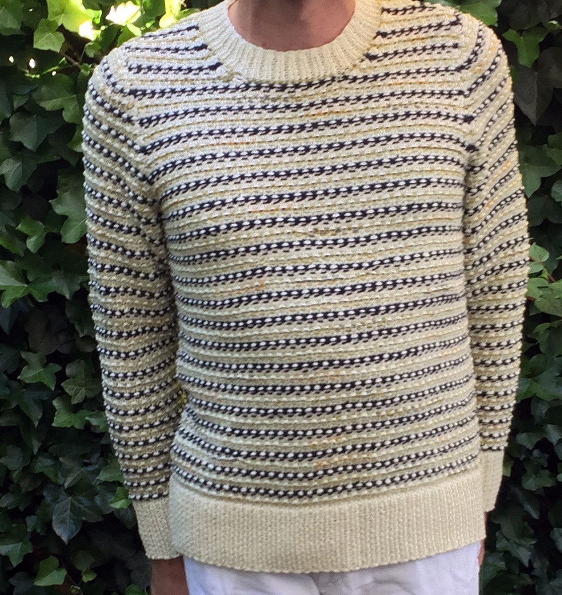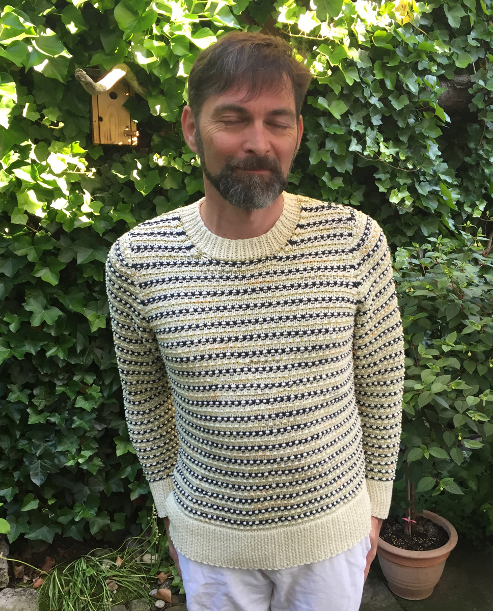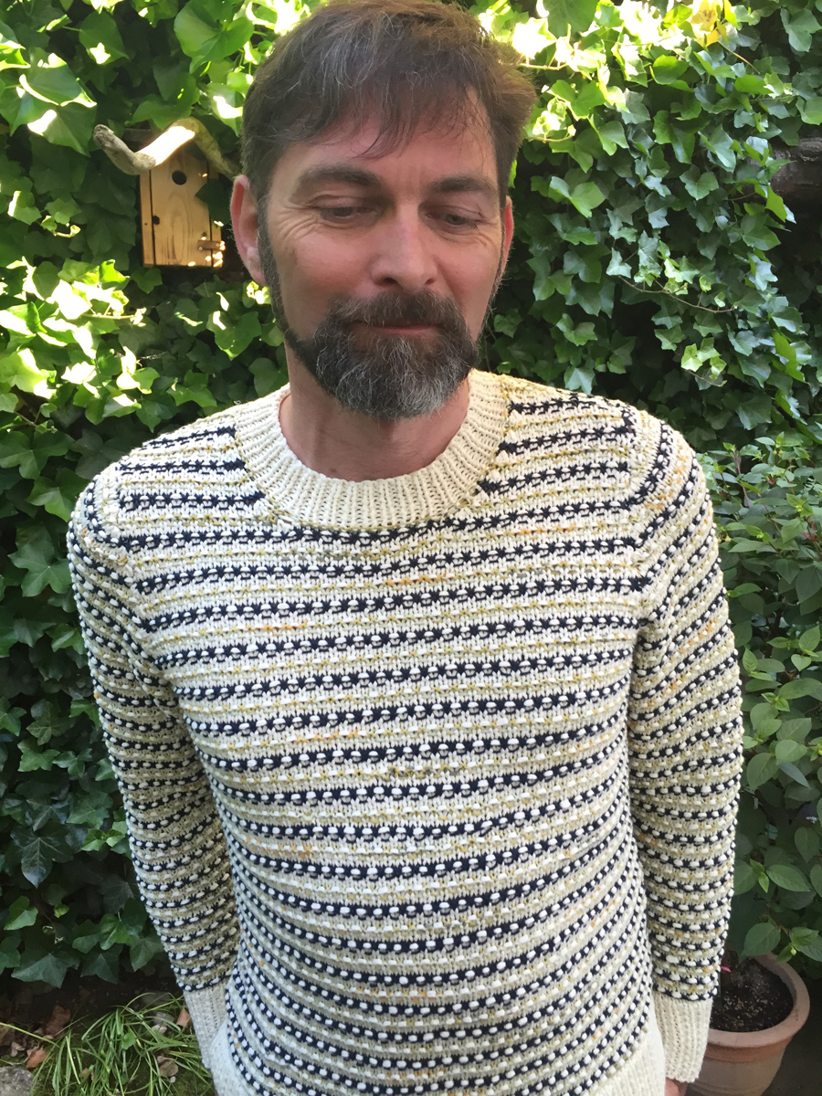 I really like this sweater Konrad, the colours and the texture created with the stitch pattern. You really are very talented!