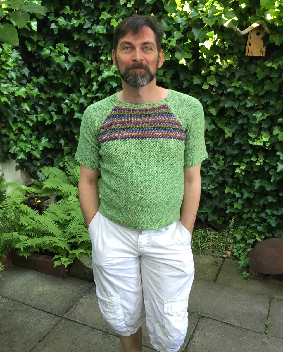 My friend Dayana inspired me with her “There Was A Whole Pullover In There?? Using Scraps For Ombré Magic” to knit this short sleeve sweater.