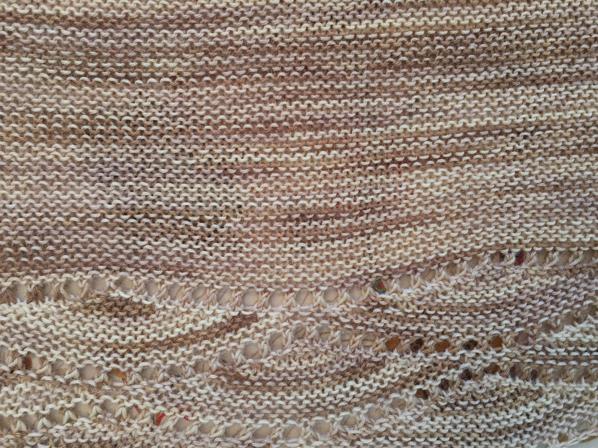 And here is a close shot of this lovely and easy pattern. You can clearly see the eyelet rows divided by the “dots” created by short-rows.
