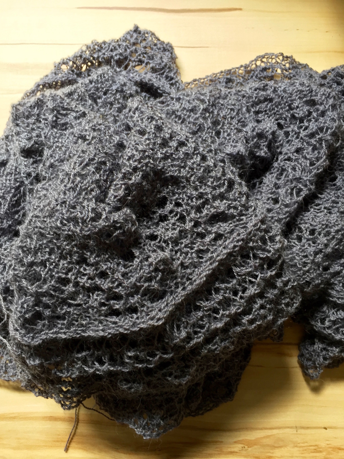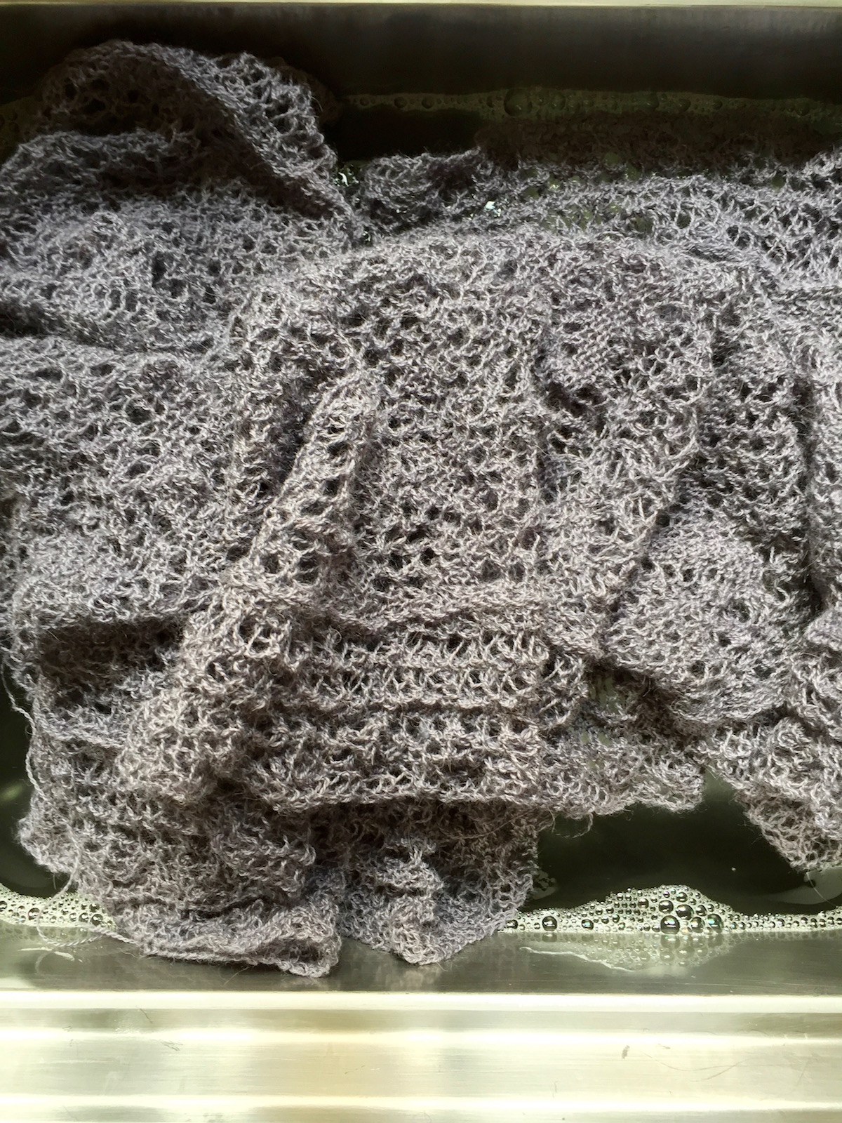 It is always a little metamorphosis going on when you are knitting lace. First the garment doesn’t looks like a garment at all and after a bath and a dressing it is unveiling its real beauty. It is amazing every single time.