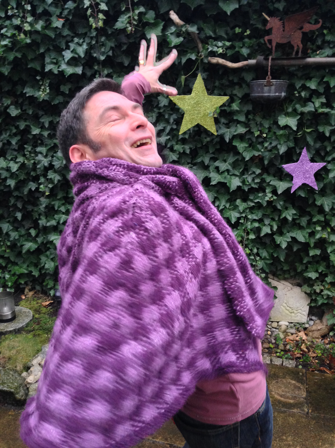 Although it looks very complicated the pattern is really simple. You only have to use one yarn for each row. But you have to knit every row twice, so this design is not a quick knit. I needed 4 days only to knit the shawl (37 st and 250 cm long). I started this garment in October but as you all know, there are other things to knit and sometimes to do, so it stayed in my knitting basket for some weeks before I finished it and I finished it in time!