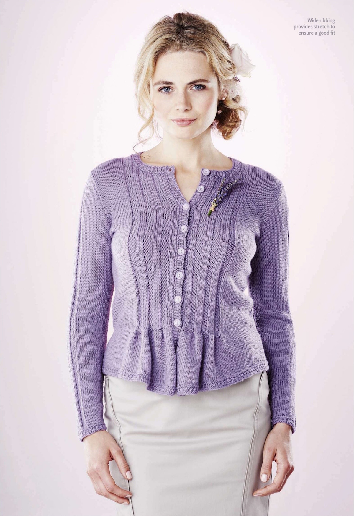 This vintage inspired jacket by Pat Menchini is designed to fit neatly. The ribbed pattern is offering some stretch. The peplum is worked using short-rows. Shown here in Baby Rooster (Baby/sport weight; 100% superwash merino wool) from Rooster.