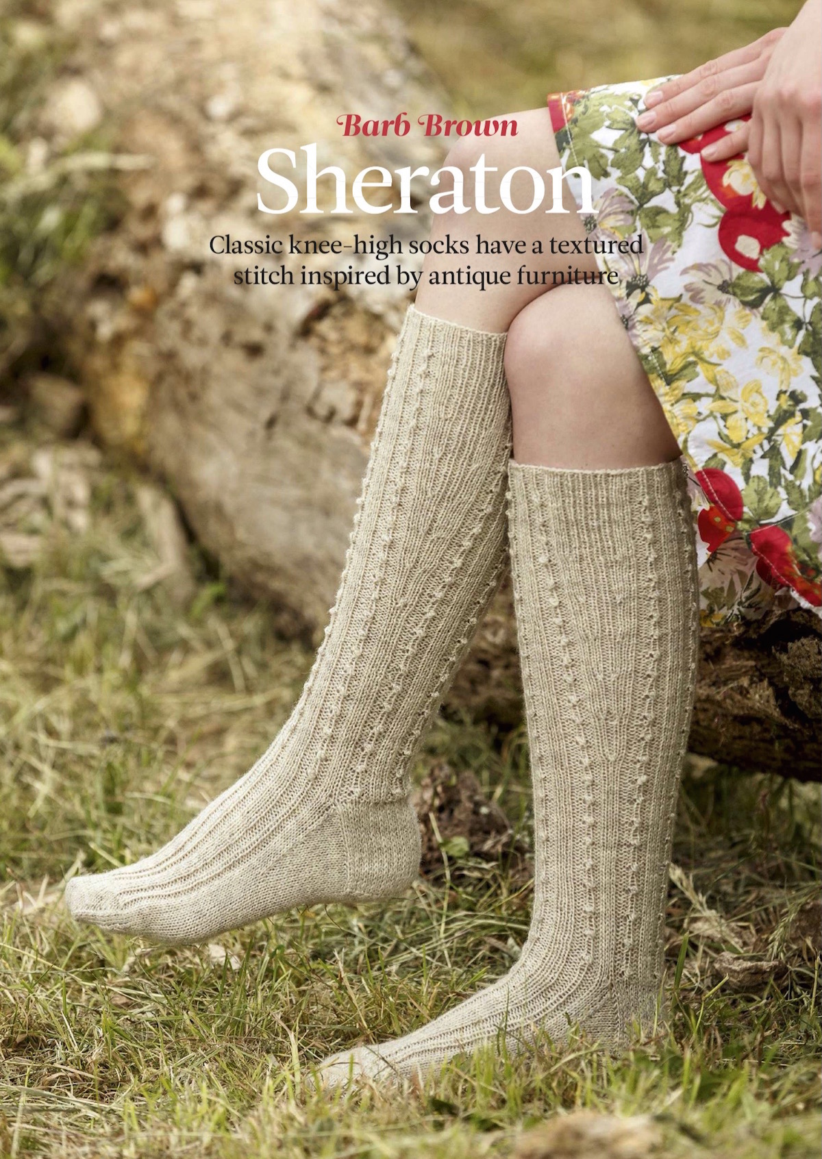 These pair of knee-high socks are showing a lovely pattern, which is created knitting tiny bobbles. They are shown here in Kroy Socks (4ply weight; 75% wool, 25% nylon) from Patons North America.