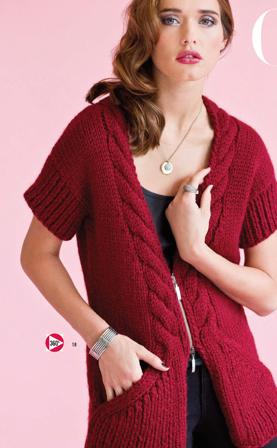 Knitable in 5 sizes from bust 41″/104cm to 51½”/131cm.