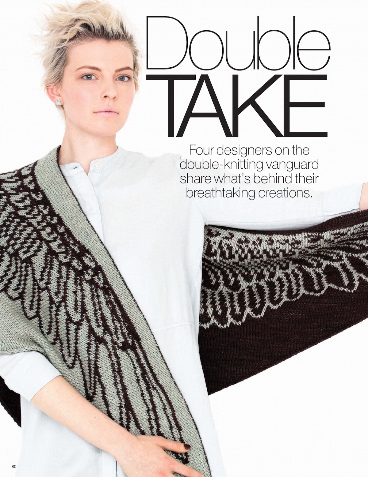 - “Double Take – A behind-the scenes look at four renowned double-knitting experts, whose breathtaking designs show us what’s possible with two colors and a bit of ingenuity.” (Christina Behnke)